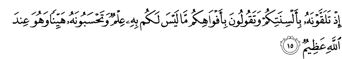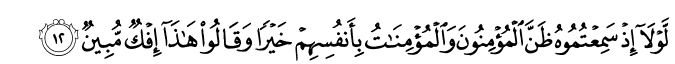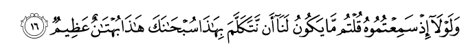 ![]() 24:12Hassanor Alapa : Oba bo gowani a man’g iyo to na miamikir so miamaratiaya a manga mama ago so miamaratiaya a manga babay ko manga ginawa iran sa mapia, ago pitharo iran a giai na kabokhagan a mapayag Muhsin Khan : Why then, did not the believers, men and women, when you heard it (the slander) think good of their own people and say: "This (charge) is an obvious lie?" Sahih International : Why, when you heard it, did not the believing men and believing women think good of one another and say, "This is an obvious falsehood"? Pickthall : Why did not the believers, men and women, when ye heard it, think good of their own own folk, and say: It is a manifest untruth? Yusuf Ali : Why did not the believers - men and women - when ye heard of the affair,- put the best construction on it in their own minds and say, "This (charge) is an obvious lie"? Shakir : Why did not the believing men and the believing women, when you heard it, think well of their own people, and say: This is an evident falsehood? Dr. Ghali : If the men believers and the women believers had thought good (thoughts) of themselves as you heard it and they would have said, "This is an evident falsehood." Tafsir Jalalayn : Why, when you [first] heard about it, did the believing men and women not think good of themselves, that is, [why did] some [not] think good of others, and say, ‘This is a manifest calumny?’, [this is] a patent lie? (there is a shift here in the address from the second to the third person), in other words, [why did] you [not] assume [good of them], O band [of believers] and say: Tagalog : Di ba karapat-dapat na mag-isip lamang ng mabuti ang sinumang mananampalataya na mga kalalakihan at mga kababaihan sa kanilang kapwa mananampalataya, kapag sila ay nakarinig ng anumang kasinungalingan na pagbibintang, na ang ibig sabihin, ang kanilang kapwa mananampalataya ay malayo sa anumang ibinibintang sa kanila, at kanilang sasabihin: Ito ay malinaw na kasinungalingan laban kay `Â`ishah, na siya ay kinalugdan ng Allâh? ![]() 24:13Hassanor Alapa : Ino iran di thalingomai sa pat a manga saksi na amay ka da a minitalingoma iran a manga 937 saksi na siran oto sii ko Allāh na siran so manga bokhag Muhsin Khan : Why did they not produce four witnesses? Since they (the slanderers) have not produced witnesses! Then with Allah they are the liars. Sahih International : Why did they [who slandered] not produce for it four witnesses? And when they do not produce the witnesses, then it is they, in the sight of Allah , who are the liars. Pickthall : Why did they not produce four witnesses? Since they produce not witnesses, they verily are liars in the sight of Allah. Yusuf Ali : Why did they not bring four witnesses to prove it? When they have not brought the witnesses, such men, in the sight of Allah, (stand forth) themselves as liars! Shakir : Why did they not bring four witnesses of it? But as they have not brought witnesses they are liars before Allah. Dr. Ghali : If they had come up with four witnesses against it- yet as they did not come up with the witnesses, then those, in the Reckoning of Allah, are they (who are) the liars. Tafsir Jalalayn : Why did they, that is, this band [of accusers], not produce four witnesses to it?, who had witnessed it. And since they did not produce the witnesses, those, in God’s sight, in His judgement, they are liars, in this [matter]. Tagalog : Di ba dapat na magdala ng apat na mabubuting testigo ang mga nagbibintang sa anumang kanilang sinasabi? Kapag ito ay hindi nila nagawa, samakatuwid, ibibilang sila na mga sinungaling sa paningin ng Allâh. ![]() 24:14Hassanor Alapa : Oda bo so kalbihan o Allāh sii rkano ago so limo Iyan sii ko doniya ago sii ko alongan a Maori na disomala a masogat kano ko nganin a piamanothol iyo a siksa a mala Muhsin Khan : Had it not been for the Grace of Allah and His Mercy unto you in this world and in the Hereafter, a great torment would have touched you for that whereof you had spoken. Sahih International : And if it had not been for the favor of Allah upon you and His mercy in this world and the Hereafter, you would have been touched for that [lie] in which you were involved by a great punishment Pickthall : Had it not been for the grace of Allah and His mercy unto you in the world and the Hereafter an awful doom had overtaken you for that whereof ye murmured. Yusuf Ali : Were it not for the grace and mercy of Allah on you, in this world and the Hereafter, a grievous penalty would have seized you in that ye rushed glibly into this affair. Shakir : And were it not for Allah's grace upon you and His mercy in this world and the hereafter, a grievous chastisement would certainly have touched you on account of the discourse which you entered into. Dr. Ghali : And had it not been for the Grace of Allah upon you and His mercy in the present (life) (Literally: the lowly "life", i.e., the life of this world) and the Hereafter, indeed a tremendous torment would have touched you for what you press on (i.e., for what you press on talking about falsehood Éifk'). Tafsir Jalalayn : And were it not for God’s bounty to you and His mercy in the life of this world and the Hereafter there would have befallen you, for what you, O band [of accusers], engaged in, [for] what you indulged in, an awful chastisement, in the Hereafter; Tagalog : Kung hindi lamang dahil sa kagandahang-loob ng Allâh sa inyo at sa Kanyang Awa na saklaw Niya ang inyong pagiging matuwid sa inyong Relihiyon at ang kabutihan sa inyong makamundo, na kung kaya, hindi Niya minadali ang Kanyang parusa sa inyo at pinatawad ang sinumang nagsisi, kung hindi lamang sa ganitong kadahilanan ay magaganap sa inyo ang matinding parusa dahil sa inyong ginawa. ![]() 24:15Hassanor Alapa : Gowani a gii niyo ipamagizai sa so dn so manga dila iyo ago giitharoon o manga ngari iyo so nganin a da a mmlng iyo ron, ago iitongn iyo skaniyan a malbod a skaniyan sii ko Allāh na lbi a mapnd. Muhsin Khan : When you were pr