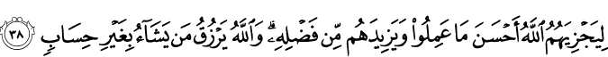 ![]() 24:36Hassanor Alapa : Sii sa manga walay (manga masjid) a inisogo o Allāh so kambalaya on ago 950 phagalowin on so ingaran Iyan a pphanasbih on sa ingaran Iyan ko kapitapita ago kagabigabi Muhsin Khan : In houses (mosques), which Allah has ordered to be raised (to be cleaned, and to be honoured), in them His Name is glorified in the mornings and in the afternoons or the evenings, Sahih International : [Such niches are] in mosques which Allah has ordered to be raised and that His name be mentioned therein; exalting Him within them in the morning and the evenings Pickthall : (This lamp is found) in houses which Allah hath allowed to be exalted and that His name shall be remembered therein. Therein do offer praise to Him at morn and evening. Yusuf Ali : (Lit is such a Light) in houses, which Allah hath permitted to be raised to honour; for the celebration, in them, of His name: In them is He glorified in the mornings and in the evenings, (again and again),- Shakir : In houses which Allah has permitted to be exalted and that His name may be remembered in them; there glorify Him therein in the mornings and the evenings, Dr. Ghali : In houses (that) Allah has permitted to be raised up and His Name to be mentioned therein- in them do extol to Him in the early mornings and the (hours) before sunset. Tafsir Jalalayn : In houses (fī buyūtin is semantically connected to yusabbihu, ‘glorify’, that will follow) [whose status] God has allowed to be raised, [houses He has allowed] to be venerated, and wherein His Name is remembered, through the affirmation of His Oneness, therein [they] make glorifications (read yusabbahu, ‘glorifications are made’, or yusabbihu, meaning ‘[therein] pray’) to Him in the mornings (al-ghuduww is a verbal noun, meaning al-ghadawāt, ‘the early mornings’) and the evenings, the darkness, after sunset, Tagalog : Ang liwanag na ito ay nagbibigay liwanag sa mga Tahanan ng Allâh (Masjid) na ipinag-utos Niya na itayo ang mga ito, igalang, linisin at ikarangal; na inaalaala at pinupuri rito ang Kanyang Pangalan sa pamamagitan ng pagbibigkas o pagbabasa ng Kanyang Aklat at pagpuri at pagluwalhati, at iba pang pamamaraan ng papuri, na rito nagsasagawa ng ‘Salâh’ ang sinuman sa Allâh, sa umaga at hapon. ![]() 24:37Hassanor Alapa : A manga mama a di siran khatmbang a kandagang 951 go da pn a kaphasai ko katatadmi ran ko Allāh, ago so kitindgn ko sambayang ago so kabgay sa zakāt a ipkhalk iran a sagawii a khabaklid on so manga poso’ ago so manga kailay. Muhsin Khan : Men whom neither trade nor sale diverts them from the Remembrance of Allah (with heart and tongue), nor from performing As-Salat (Iqamat-as-Salat), nor from giving the Zakat. They fear a Day when hearts and eyes will be overturned (from the horror of the torment of the Day of Resurrection). Sahih International : [Are] men whom neither commerce nor sale distracts from the remembrance of Allah and performance of prayer and giving of zakah. They fear a Day in which the hearts and eyes will [fearfully] turn about - Pickthall : Men whom neither merchandise nor sale beguileth from remembrance of Allah and constancy in prayer and paying to the poor their due; who fear a day when hearts and eyeballs will be overturned; Yusuf Ali : By men whom neither traffic nor merchandise can divert from the Remembrance of Allah, nor from regular Prayer, nor from the practice of regular Charity: Their (only) fear is for the Day when hearts and eyes will be transformed (in a world wholly new),- Shakir : Men whom neither merchandise nor selling diverts from the remembrance of Allah and the keeping up of prayer and the giving of poor-rate; they fear a day in which the hearts and eyes shall turn about; Dr. Ghali : Men whom neither commerce nor trade (Literally: selling) diverts from the Remembrance of Allah, and keeping up the prayer, and the bringing of the Zakat, (Paying the poor-dues) fearing a Day when hearts and beholdings will be turning about, Tafsir Jalalayn : men (rijālun, the subject of the verb yusabbihu, ‘make glorifications’; if [the passive is] read, yusabbahu, ‘glorifications are made’, it [rijālun, ‘men’] substitutes for the [impersonal] subject of lahu, ‘to Him’, so that rijālun, ‘men’, is the subject of an implied verb in response to an implied question as if one had asked: who makes glorifications to Him?) whom neither trading, purchase, nor sale distracts from the remembrance of God and the observance of prayer (the [final] hā’ of iqāmat, ‘the observance’, has been omitted to facilitate [the reading]) and payment of the alms. They fear a day when hearts and eyes will be tossed about, in fear, the hearts [tossed about] between [the hope of] deliverance and [the fear of] destruction, and the eyes to the right and to the left [out of anxiety] — this is the Day of Resurrection; Tagalog : Mga kalalakihan na hindi naabala ng negosyo at pagbebenta mula sa pag-alaala nila sa Allâh, at pagsagawa ng ‘Salâh,’ pagbibigay ng ‘Zakâh’ o Obligadong kawanggawa sa mga may karapatan, natatakot sila sa Araw ng Muling Pagkabuhay na kung saan doon ay babaling ang mga puso sa pagitan ng pag-asa na maligtas at pagkatakot na mapahamak, ganoon din ang kanilang mga paningin na nakaabang tungo sa kung saan sila patutungo? ![]() 24:38Hassanor Alapa : Ka an siran kabalasi o Allāh sa lbi a mapia ko nganin a ping-galbk iran, ago pagomanan Iyan siran ko pd ko kalbihan Iyan, go so Allāh na phrizkhian Iyan so taw a khabayaan Iyan sa da dn a itong iyan Muhsin Khan : That Allah may reward them according to the best of their deeds, and add even more for them out of His Grace. And Allah provides without measure to whom He wills. Sahih International : That Allah may reward them [according to] the best of what they did and increase them from His bounty. And Allah gives provision to whom He wills without account. Pickthall : That Allah may reward them with the best of what they did, and inc