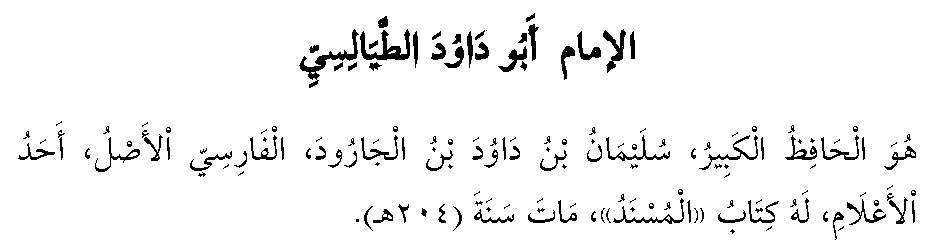 Skaniyan so imām a mala’ a so Sulaymān bin Dāūd bin al Jārūd, tngr a taw sa Fāris, isa skaniyan ko manga tanda’ o kata’o, adn a kitab iyan a al Musnad, miawafat ko ragon a 204 Hijriyyah.