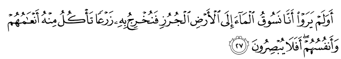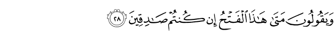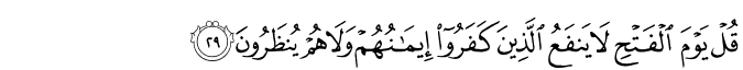 032:27Hassanor Alapa : Ba iran da mailay a pthimoon Ami so ig ko lopa a kabagabagas na mapakam-bowatn Ami ron a babasoka a mapphanathab o manga ayam iran ago pphakakan on so manga ginawa iran, na ba iran di maphami-mikiran Muhsin Khan : Have they not seen how We drive water (rain clouds) to the dry land without any vegetation, and therewith bring forth crops providing food for their cattle and themselves? Will they not then see? Sahih International : Have they not seen that We drive the water [in clouds] to barren land and bring forth thereby crops from which their livestock eat and [they] themselves? Then do they not see? Pickthall : Have they not seen how We lead the water to the barren land and therewith bring forth crops whereof their cattle eat, and they themselves? Will they not then see? Yusuf Ali : And do they not see that We do drive rain to parched soil (bare of herbage), and produce therewith crops, providing food for their cattle and themselves? Have they not the vision? Shakir : Do they not see that We drive the water to a land having no herbage, then We bring forth thereby seed-produce of which their cattle and they themselves eat; will they not then see? Dr. Ghali : And have they not seen that We drive the water to the arid land, so We bring out plantation therewith with which their cattle (ÉAncam includes cattle, camels, sheep and goats) and themselves eat? Will they not then behold?" Tafsir Jalalayn : Or have they not seen how We drive the water to barren land (juruz), [this] is arid land that contains no vegetation), and therewith bring forth crops whereof their cattle and [they] themselves eat? Can they not see?, this and so realise that We have the power to bring them back [to life after death]. Tagalog : Hindi ba nakikita ng mga hindi naniniwala sa Pagkabuhay na Mag-uli pagkatapos ng kamatayan, na dinadala Namin ang tubig-ulan tungo sa tuyot na kalupaan na hindi tinutubuan ng anumang pananim, at pagkatapos noon ay pasisibulin Namin ang iba’t ibang uri ng mga pananim na kung saan kumakain mula roon ang kanilang mga hayop, at nakakakuha sila ng kapakinabangan sa pamamagitan nito bilang kabuhayan? Hindi ba nakikita ng kanilang mga mata ang mga biyayang ito, upang mapatunayan nila na ang Allâh na gumawa nito ay Ganap na Makapangyarihan na kaya Niyang buhayin ang mga patay mula sa kanilang mga libingan?  032:28Hassanor Alapa : Go gii ran tharoon a anda i masa ankai a bankit amay ka toman kano 1167 Muhsin Khan : They say: "When will this Al-Fath (Decision) be (between us and you, i.e. the Day of Resurrection), if you are telling the truth?" Sahih International : And they say, "When will be this conquest, if you should be truthful?" Pickthall : And they say: When cometh this victory (of yours) if ye are truthful? Yusuf Ali : They say: "When will this decision be, if ye are telling the truth?" Shakir : And they say: When will this judgment take place, If you are truthful? Dr. Ghali : And they say, "When will be this Conquest (of yours), in case you are sincere?" Tafsir Jalalayn : And they say, to the believers: ‘When will this [decisive] Judgement, between us and yourselves, be, if you are truthful?’ Tagalog : Minamadali nila na mga di-naniniwala sa Allâh ang parusa at kanilang sinasabi: Kailan pa ba ang pagpasiya bilang paghuhukom sa pagitan namin at ninyo upang parusahan kami na tulad ng inyong inaangkin kung kayo ay totoo sa inyong pag-aangkin?  032:29Hassanor Alapa : Na tharo anka (hay Mohammad) a sii ko gawii a kapakaoma o bankit na di phakanggay a gona ko siran oto a miamangonkir so paratiaya iran ago di siran dn khalanatan (sa ba siran makaparatiaya) Muhsin Khan : Say: "On the Day of Al-Fath (Decision), no profit will it be to those who disbelieve if they (then) believe! Nor will they be granted a respite." Sahih International : Say, [O Muhammad], "On the Day of Conquest the belief of those who had disbelieved will not benefit them, nor will they be reprieved." Pickthall : Say (unto them): On the day of the victory the faith of those who disbelieve (and who then will believe) will not avail them, neither will they be reprieved. Yusuf Ali : Say: "On the Day of Decision, no profit will it be to Unbelievers if they (then) believe! nor will they be granted a respite." Shakir : Say: On the day of judgment the faith of those who (now) disbelieve will not profit them, nor will they be respited. Dr. Ghali : Say, "On the Day of the Conquest the belief of the ones who have disbelieved will not profit them, and they will not be respited." Tafsir Jalalayn : Say: ‘On the day of [this] Judgement, [which will be effected] by sending the chastisement on them, their [newly found] faith [then] shall not benefit those who had been disbelievers, nor shall they be given respite, to make repentance or [offer] excuses. Tagalog : Sabihin mo sa kanila, O Muhammad: Ang Araw ng Pagpasiya na kung saan kayo ay parurusahan doon, na ito ay inyong makikita sa oras ng kamatayan, na sa pagkakataong yaon ay hindi na mapakikinabangan ang paniniwala ng sinumang hindi naniwala, at hindi rin sila bibigyan ng kahit na sandaling palugit upang maiantala ang parusa para sila ay makapagsisi at makapagbalik-loob.  032:30Hassanor Alapa : Na talikhod inka siran ago nayaw ka ka mataan a siran na gii siran mnayaw 1168 Muhsin Khan : So turn aside from them (O Muhammad SAW) and await, verily they (too) are awaiting. Sahih International : So turn away from them and wait. Indeed, they are waiting. Pickthall : So withdraw from them (O Muhammad), and await (the event). Lo! they (also) are awaiting (it). Yusuf Ali : So turn away from them, and wait: they too are waiting. Shakir : Therefore turn away from them and wait, surely they too are waiting. Dr. Ghali : So veer away from them, and wait; surely they (too) are waiting. Tafsir Jalalayn : So turn away from them, and wait, for the chastisement to be sent down on them. They too are waiting, for your death to take place or [for you] to be killed and so be rid of 
